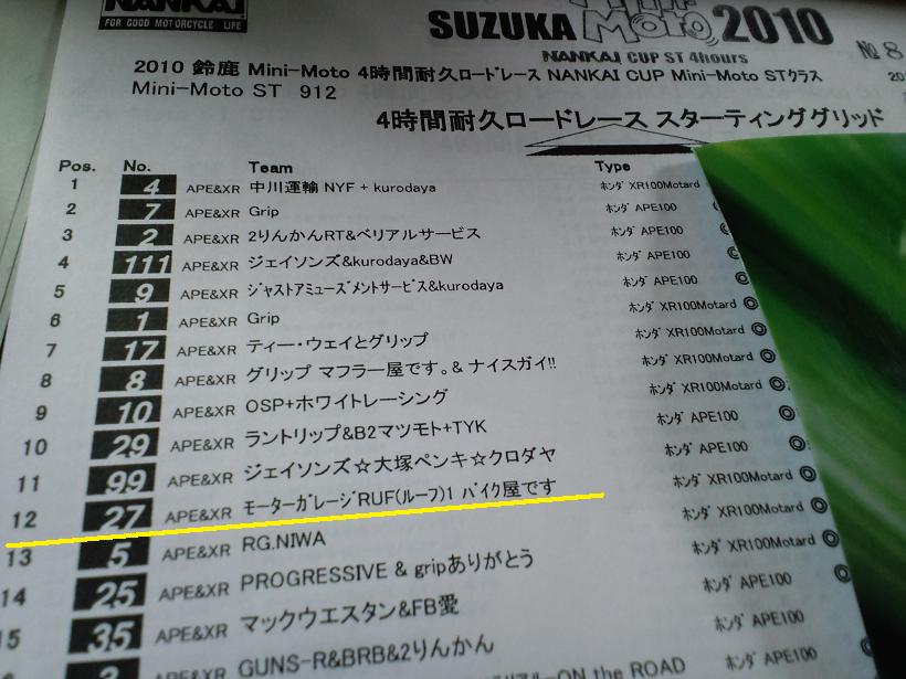 スターティンググリッド12番からのスタート。